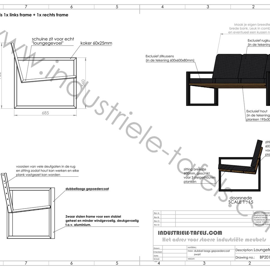 Los Loungebank Frame Loungestoel Frame Industriele Tafels