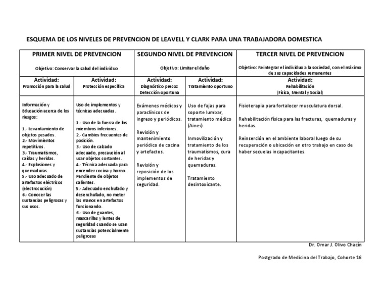 Niveles de prevencion de leavell y clark ejemplos. La prevención primaria ahora en ella está incluidas la promoción de la salud y la protección específica como el primer nivel de atención en salud de los niveles de prevención. El medio ambiente es un crucial para. Años anteriores a la formulación de los niveles de clark y leavel h. Sigerist consideraba la medicina como un todo las partes que la constituyen son inseparables y hacer prevención curación y rehabilitación es hacer una buena medicina.