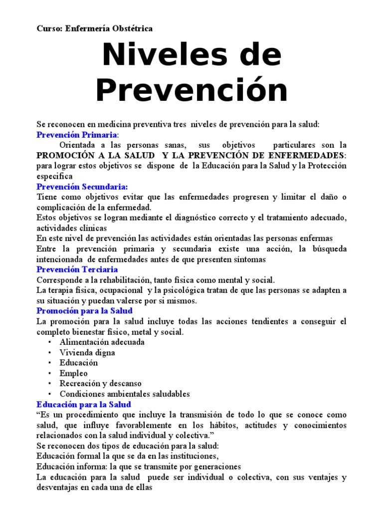 Acciones de salud según niveles de prevención mejoramiento de. Niveles de prevención de leavell y clark en el concepto de leavell y clark. Vacunación de niños y embarazadas. Defina las diferencias entre cada nivel de prevención.